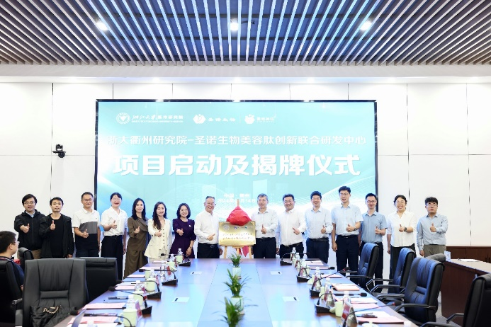 2024年10月14日,“浙江大學(xué)衢州研究院-圣諾生物美容肽創(chuàng)新聯(lián)合研發(fā)中心” 項目啟動及揭牌儀式在浙江大學(xué)衢州常山港院區(qū)隆重舉行。